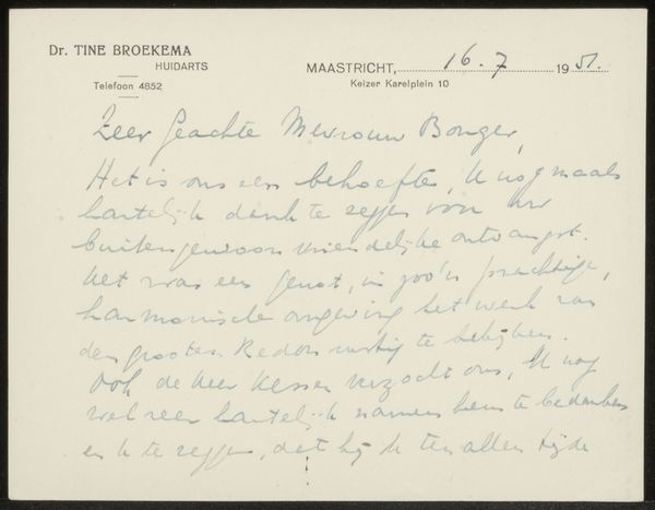 Curator: Before us is a work entitled "Brief aan Philip Zilcken," which translates to "Letter to Philip Zilcken." It's a drawing created before 1912 by B. Bénédict, rendered in ink on paper. Editor: My immediate impression is of intimacy, but also distance. It is something written by hand, yet the fact that I can't read it places me on the other side. I wonder about the physical process of crafting each letter with pen and ink— the quality of the paper, the consistency of the ink... Curator: Absolutely. Handwriting carries immense symbolic weight; think about how signatures authenticate documents or how love letters carry emotional truth. Here, the act of handwriting itself signals personal communication and intentionality. The consistent pressure suggests care. Editor: And this consistency suggests skill. We can appreciate the movement and craft. In what conditions was it created? Natural light, dim lamp? What type of nib was Bénédict using? I imagine the writing process as a deliberate dance between the artist and their tools. Curator: Such letters offer us a glimpse into a specific social milieu and mindset. What kind of visual language and stylistic features does this handwriting offer to better interpret this letter? The flourishes certainly point towards an established style. Editor: It's tempting to look closer. The watermarks might help date the work with greater accuracy, placing Bénédict and Zilcken in their historical moment. Where was the paper sourced, what labor went into making it? The story is woven into the material itself. Curator: By decoding the subtleties and appreciating the dedication embedded into the physical script we may unlock unique aspects from this interaction of minds— the letter can act as a type of symbol. What does the gesture, the script and its materiality together represent? Editor: Looking closely at process invites further interpretation. While we see script, Bénédict handled ink and paper. In some senses this could be viewed less as "writing," and more as material expression or abstract gesture making use of a practical medium of communication. I appreciate this perspective. Curator: Indeed. This letter allows us to remember and connect deeply, by allowing ourselves to dwell within its details, it helps us reconstruct narratives long lost. Editor: And in looking closer we celebrate all aspects that come together when human minds reach other, both materially and spiritually.