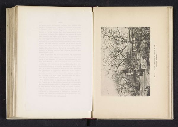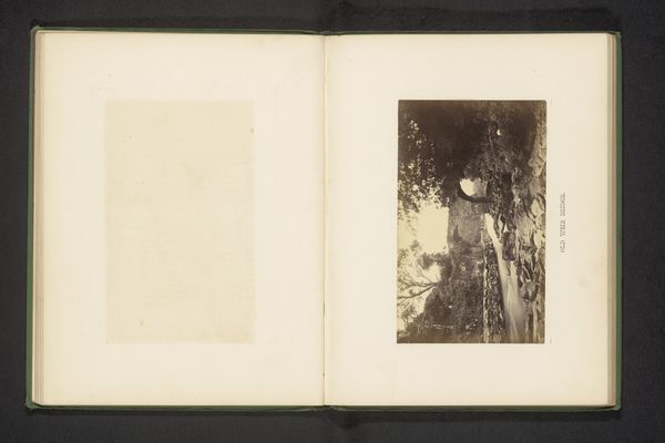 Editor: So here we have "Engelse Pointer", a gelatin-silver print dating from before 1888. It's part of an open book. On the left side we see the photo of a dog, on the other there is dense typography, hard to decipher at first sight. I wonder why photography would be integrated into what looks like a journal. What strikes you most about this work? Curator: This image encapsulates the burgeoning intersection of industrial processes and the domestication of animals. The gelatin-silver print was itself a product of mass production and chemical innovation, allowing for widespread distribution of images. To juxtapose it with text that reads like a personal, possibly even scientific journal, really asks us about knowledge production and value. Editor: That's fascinating! So, the very materiality of the photograph and book speaks to mass production... does that challenge the idea of a unique artwork? Curator: Precisely. Before widespread photographic reproduction, images, particularly portraits like this one, would be created on a case by case basis. This, on the other hand, points to a breakdown of that separation of labor. Think about the materials used – gelatin, silver, paper – all part of interconnected systems of trade and manufacture, creating this specific image, this object, this record of, well, a dog. How do the aesthetics play into its value? Editor: I guess the contrast between the dense, almost unreadable text, and the clarity of the photograph creates a kind of tension between the scientific and the personal? Maybe it is like keeping a log? Curator: Exactly. And how does the depiction of a domestic animal reflect the society of that time? What does the breeding, ownership, and representation of this pointer signify about class and control of nature? Editor: This really gives me a different perspective of considering how it all contributes to this moment. Curator: Indeed. Paying attention to these relationships can offer richer insight.