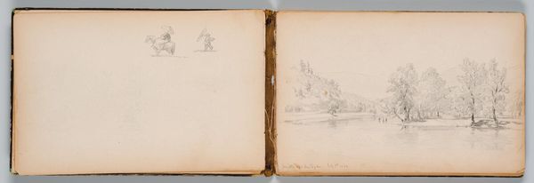 Curator: This is Sanford Robinson Gifford’s pencil sketch, Susquehanna River, Pennsylvania, currently residing at the Harvard Art Museums. Editor: It's wonderfully serene. The soft pencil work creates such a tranquil scene. Curator: Gifford was part of the Hudson River School, and these sketches capture his engagement with the American landscape. It reflects the 19th-century idealization of nature and westward expansion. Editor: Water is often a symbol of the subconscious, so to see so much of it mirrored here… it feels deeply contemplative, as if inviting self-reflection. Curator: The Susquehanna River held significant cultural importance, representing both natural beauty and also the complicated history of westward expansion and its impact on indigenous populations. Editor: I see that tension too, between the beauty and the quiet acknowledgement of displacement. Curator: A powerful reminder of the complexities embedded within landscape art. Editor: Indeed; beauty and history interwoven.