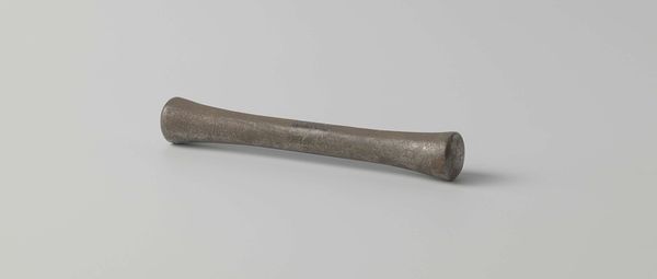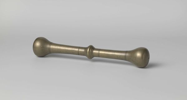 Curator: Right, let's look at this... it’s a cast-iron pestle dating from 1591. Peeter van den Ghein the Second is credited with its creation. Editor: My first impression is simple: heavy and purposeful. It looks like something from another age entirely. The metal has a worn feeling; solid, like it's ready to be put to work. Curator: Exactly! There's such functional beauty to it. Think about it: it's from a time when even the most mundane objects had a handcrafted quality. It connects us, in a tangible way, with the daily grind…quite literally, in this case. Editor: I suppose! Looking closer, I’m fascinated by the shape—the weight distributed so carefully across its form to maximize utility. Consider the gentle curve transitioning into the narrow stem and back again at its striking end. Curator: You're pinpointing exactly what captivates me! Its creator balanced form and functionality in this. Each curve speaks volumes. Did it pound spices? Crush medicines? What meals were created using this humble tool? One cannot say! Editor: That’s an interesting question. What materials was this typically paired with? What ingredients were being combined with that era's cuisine, do you think? Perhaps its medieval context hints at herbal remedies too? Curator: Likely so. Can you imagine all the different colors and textures this metal has encountered? The stories it could tell... Editor: It feels profoundly disconnected from our modern kitchens full of gleaming chrome, a reminder of how radically we've altered even the simple act of cooking. Curator: Beautifully put! Seeing such an old tool somehow simplifies and expands time for me... Editor: Indeed. It reminds us that essential forms persist long after trends disappear.