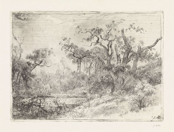 Curator: This is William James Müller's "Glen Martin Mill, Porlock" from 1835, currently held in the Tate Collections. Editor: It has a subdued, almost melancholic feel. The stark monochrome lends a sense of distance, wouldn't you agree? Curator: Quite. Müller was fascinated by the intersection of labor and landscape. Notice how the mill is both picturesque and a site of production. The materiality of that humble structure speaks volumes of rural life. Editor: Agreed, but the composition is also key. The way the lines of the landscape draw your eye toward the mill, emphasizing its importance within the scene, and the limited palette concentrates your view on contrasts in texture and form. Curator: And it's vital to consider the socioeconomic context. Müller was documenting a disappearing way of life with industrialization looming. Editor: True, but the beauty of the work rests on the strength of its forms. Curator: Ultimately, it's a stark reminder of the forces shaping rural existence. Editor: Yes, and a beautiful study in the subtleties of tone and composition.