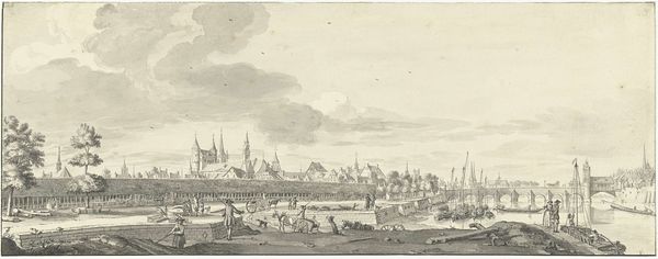 This black chalk drawing offers us a glimpse into the city of Grave. Dominating the skyline is the church tower, a potent symbol of spiritual and communal life. Observe the careful depiction of the walls around the city, which speak volumes about the historical context of the artwork. Such city walls are not merely physical barriers; they are also psychological boundaries. Think of the walls of Troy. They resonate with a long history, signifying not just protection but also the aspirations and anxieties of urban life. As we look back to the past, we see how cities everywhere have erected walls, both literal and metaphorical, to define their identity, to safeguard their community, and to assert their presence in a world of constant flux. The tower stands as a beacon, not just for the devout, but for all who seek the reassurance of a structured society. The act of fortifying a settlement echoes through time, a testament to the enduring human drive for security and order. The image of a fortified city such as this one engages our collective memory and resonates deeply within our subconscious.