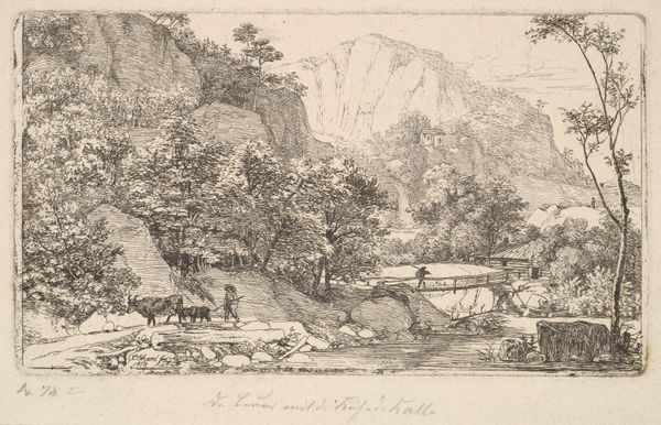 Jan Both created this print, The Wooden Bridge at Sulmona near Tivoli, around 1650. It presents an idealized Italian landscape populated by figures crossing a rustic bridge. Both was a Dutch artist who spent time in Italy, absorbing its artistic traditions and picturesque scenery. The print reflects the Northern European fascination with Italy as a site of classical history and natural beauty. It shows how artists used prints to disseminate this vision of Italy to a wider audience, shaping perceptions of the country. The wooden bridge can be read as a metaphor for the connection between the Netherlands and Italy, or the natural and classical worlds. Studying Both's work, alongside travel accounts, guidebooks, and other prints of the time, allows us to understand how cultural exchange and artistic representations shaped the idea of Italy in the 17th century.