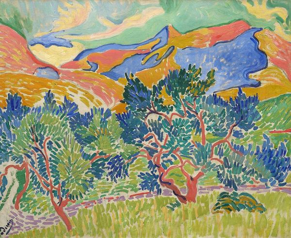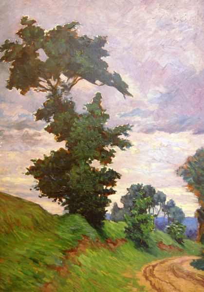 David Burliuk painted "Landscape in New Mexico" with oil on canvas, capturing the vast openness of the American Southwest. The scene is animated by symbols of pastoral life, with a horse and goats freely roaming a meadow with sunflowers. Since antiquity, the horse has been a symbol of vitality, energy, and freedom. Its presence here evokes the untamed spirit of the land and the vitality of rural existence. Observe how the horse, rendered in bold strokes, echoes the dynamic energy seen in ancient equestrian sculptures and battle scenes. The goats, ancient symbols of virility, also draw from archetypal imagery, from pagan rituals to bucolic scenes in classical art. Note the tent on the right, a sign of human presence, that evokes a sense of transience and the nomadic lifestyle. The painting’s emotional power lies in its layering of symbols, creating a timeless tableau of nature and humanity coexisting, engaging viewers on a subconscious level. These motifs reflect our collective memory, constantly resurfacing and evolving, reminding us of the enduring connection between humanity and the natural world.
