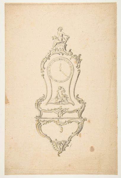 Editor: This is a nineteenth-century ink drawing, "Design for a Compote Dish," currently held at the Metropolitan Museum of Art. The detailed ornamentation gives it an almost opulent feel, even in this monochrome sketch. What strikes you most about this design? Curator: I'm intrigued by how this design speaks to the complex relationship between art, craft, and social class in the 19th century. The compote dish itself signifies a certain level of bourgeois domesticity, a space where social rituals were performed. What does this elaborate design tell us about the aspirations and values of the people who might have used such an object? Editor: It feels very excessive! Was it common to see such extravagant designs in functional objects? Curator: Exactly! The extravagance raises questions. Was this design meant for production, or was it a more aspirational statement? And who was it designed for? The rising middle class was eager to display wealth and status, often mimicking aristocratic aesthetics. However, this level of ornamentation could also represent a rejection of industrial standardization, a desire to return to individualized craftmanship as a form of resistance against mass production. Editor: So, the design reflects both embracing and rejecting the social structures of the time. Curator: Precisely. It encapsulates the tensions between embracing upward mobility and critiquing the systems that made it possible. Do you think that tension comes across in the artwork itself? Editor: Definitely. Seeing it as more than just a decorative object helps unpack a broader narrative about class and aspiration. Curator: Indeed. It invites us to consider the object's potential role in shaping and reflecting social identities and power dynamics. I think I see it in a new way too!