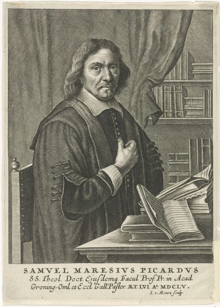 This engraving of William Dugdale was created in London in 1656 by Wenceslaus Hollar. It is one of many prints made in the 17th century. This artwork was made using the technique of etching, and it has the ability to produce fine and detailed lines through the manipulation of metal plates. The etching process has imbued the print with social significance, in the way that it makes portraits more widely accessible to a growing middle class. It offers a glimpse into the world of 17th-century portraiture. Hollar's skill in capturing Dugdale's likeness, while also hinting at the sitter’s professional status through the inclusion of books and writing implements, shows the rise of printmaking and its role in circulating images and ideas, contributing to a broader culture of knowledge and visual literacy. Therefore, understanding the materials, the making, and the historical context challenges traditional distinctions between fine art and craft.