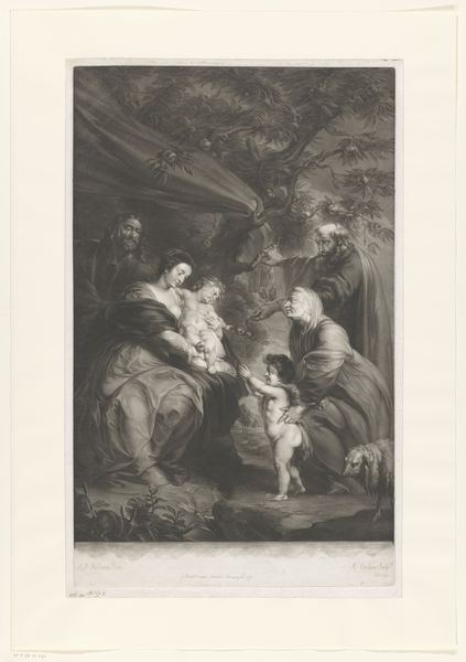 Editor: Here we have "Maria Appears to Saint Ildefonsus of Toledo," an engraving by William Unger, made sometime between 1847 and 1889. It depicts a scene of supposed divine intervention, but the overall impression to me is quite formal, almost theatrical. What do you see in this print, considering its place in art history? Curator: From a historical perspective, engravings like this served a vital role in disseminating artistic ideas and narratives. Before photography became widespread, prints like these allowed for the reproduction and distribution of images of important paintings to a wider audience. Note how the format is almost like a triptych, guiding the eye through a religious narrative meant for public edification. Do you think the intended audience was meant to feel included, or feel separate from the miraculous event? Editor: I imagine rather separate. It's like looking into a play – you witness it, but you're not part of it. This print, being reproducible, allowed the wealthy and middle class to appreciate and celebrate images sanctioned and legitimized by those in political power. Curator: Precisely. Consider the implications of making a "miracle" available to private owners in print, ready for wall display. This changed the artwork’s context in terms of viewership, and consequently in purpose, compared to it having been installed in a cathedral. What does that shift say about power structures and their engagement with the general public? Editor: I never thought about prints this way! The shift you point out changes it from a purely devotional tool to something used to communicate cultural values. I wonder what Unger thought about this tension himself… Curator: Indeed, and Unger, as the printmaker, takes on an interpretative role by choosing the style, the focus, and essentially mediating how the original painting, and ultimately the "miracle," is viewed by subsequent generations. The politics of imagery, indeed.