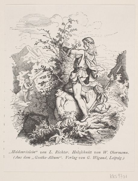 This is a caricature from 1860 by Johan Michaël Schmidt Crans, executed with pen and ink, featuring delicate yet decisive lines that shape a scene of socio-political commentary. The composition centres on two draped figures leaning against a crag, their gaze drawn to a large seal, emblazoned with text and symbols that arrest the viewer’s attention. The seal’s prominence invites a semiotic reading, where the contrast between the figures’ contemplative postures and the bold stamp suggests a tension between artistic endeavor and governmental imposition. The stark black lines against the off-white paper create a visual hierarchy, emphasizing the seal as a focal point. This contrast draws us into the artist’s critical stance on the implications of the tax, subtly destabilizing conventional notions of value and artistic freedom.