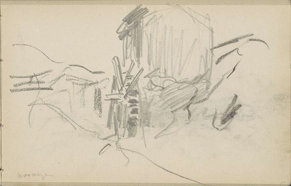 Editor: This pencil drawing, “Boer met vier koeien” or "Farmer with four cows," by Leo Gestel, is currently housed at the Rijksmuseum and was created sometime between 1891 and 1941. The simple lines create such a calm feeling, almost like a peaceful memory. What catches your eye when you look at this piece? Curator: What strikes me is how this seemingly simple depiction of rural life is laden with historical context. Consider the time period; late 19th to early 20th century, a period of massive industrialization and urbanization. How might this drawing be read as a commentary on those shifts? A nostalgic yearning, perhaps? Editor: That's a good point! I hadn’t really considered it beyond its surface beauty. So, the cows and the farmer become more than just… cows and a farmer? Curator: Precisely. And note the artist's choice of medium: pencil on paper. Inexpensive, easily accessible. Is Gestel perhaps democratizing the landscape genre, moving it away from the oil paints favored by the wealthy? Editor: I see, so the *materials* themselves speak to a wider socio-political idea about who art is for! The museum contextualization of this sketch also has implications... It almost romanticizes labour as a visual commodity, now displayed as a drawing of that period. Is this an ethical artistic commentary? Curator: Exactly! By placing it in the museum, we participate in that ongoing dialogue about labor, value, and the artist's role in society. These were all major social, political and artistic preoccupations as Gestel and his contemporaries were considering and shaping artistic progress in this era. Editor: This gives me so much to consider beyond just looking at the drawing itself. Thanks for helping me to understand this artwork from this socio-historical lens! Curator: It's through that expanded lens, analyzing art as part of its societal context, that we can understand it more richly. It shows us how political the pencil of an artist might be.