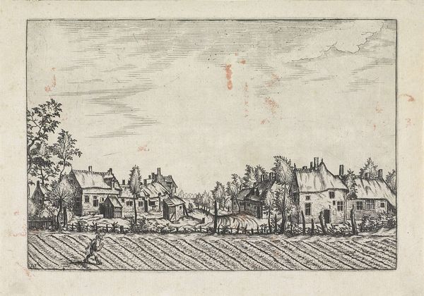 Curator: Here we have "Gezicht op Haarlem over de Amsterdamse vaart," an etching and engraving made sometime between 1763 and 1813, attributed to Johannes Swertner, depicting a vista of Haarlem. Editor: It feels incredibly ordered, almost sterile. The regimented lines create a precise, balanced, but ultimately somewhat detached representation of the town. There is a coolness to it. Curator: Indeed. The formal clarity is striking. Consider the artist's manipulation of line. Note how they create a palpable sense of distance through carefully modulated hatching, structuring the entire composition in layers receding into the horizon. What do you make of the heavy weighting towards the sky? Editor: Dominating the top half of the picture. The vast sky is really important here and shows a sublime sense of nature in this landscape. But that same cloud is a little threatening hovering over the otherwise peaceful scene below. The whole thing sits under a sense of the encroaching storm. It seems nature's way to showing man is just a small cog. Curator: Certainly, one could argue it infuses the composition with a dynamic tension, doesn’t it? That very linear depiction that contains the sky seems also like a symbol for Dutch ingenuity of land reclaiming, of how its structure imposes an order. I wonder if the artist would use these precise methods to signify the idea of controlling the uncontrollable. Editor: I think you make an interesting point about Dutch industriousness. The work would likely reflect growing national confidence but within this tiny window. Swertner reveals the social climate; a prosperous nation viewed from a distance and kept neatly at bay through line and tone. Curator: The city is set against its agriculture on the left side, with laborers seemingly travelling back and forth. This represents its key power through that mercantile prosperity but only within the safety and walls of the perimeter it has carefully created. A good moment to acknowledge the value of graphic print at the time; prints like these distributed an imagery of nation and its landscape very widely. Editor: Exactly. It provides this perspective with precision; and I would like to thank the artist for delivering this very still, stable version to look at this far on. Curator: Well, let us appreciate Swertner’s mastery, leaving us with its tranquil and very self-contained observation.