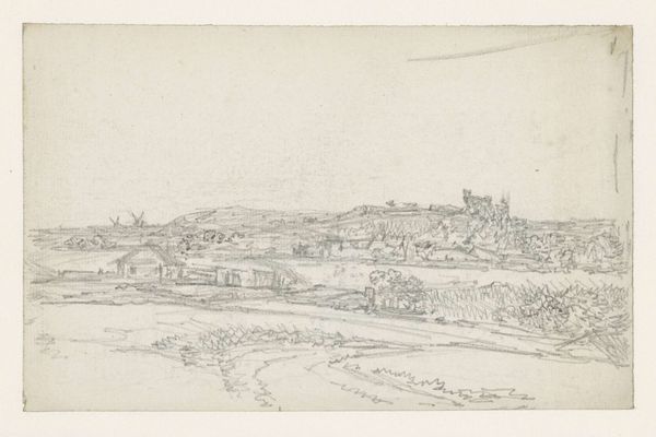 Curator: Looking at "Heuvellandschap met mijninstallatie en elektriciteitspalen"—that translates to "Hilly Landscape with Mine Installation and Electricity Poles"—made sometime between 1913 and 1945 by Henk Henriët. It’s currently held at the Rijksmuseum. What strikes you about it initially? Editor: There's an immediate sense of stillness, almost melancholic. The landscape seems burdened by these stark industrial elements. Is this pencil drawing typical of Henriët's output at this period? Curator: To an extent, yes. Henriët often focused on landscapes, but he wasn't afraid to depict how industry reshaped the natural world. You notice how precisely the artist renders the textures and functional structures of these very same man-made interventions across the horizon. The materiality, it's the thing itself; the pencil meticulously crafting those forms. Editor: Exactly. It makes you think about labor. The mines visible in the distance would likely involve strenuous work, often in precarious conditions. Considering the work's time period, are there particular social or political implications of pairing the pastoral and the industrial in this way? Curator: Certainly. Given that this was a time of great social change, Henriët uses realism to illustrate this juxtaposition of nature and industrialization. What about this composition really jumps out at you? Editor: The dominance of these structures is stark. The electricity poles stride across the hills like invading figures, underscoring nature’s submission to industrial needs, demanding energy and land to extract what is beneath the soil. Curator: I wonder if we should interpret that energy consumption beyond solely as economic value and connect this with issues of natural resource exploitation. Henriët captures how resources become material capital, as he converts marks to shapes; almost converting material (landscape) to symbolic resources of cultural heritage as exhibited now in a museum! Editor: It’s as if we are seeing the before and after in a single frame; the idyllic pasture giving way to modernity, creating its own impact and challenges, which still haunt us today through questions of sustainable transition. It’s very layered. Curator: Ultimately it is interesting how Henriët converts social conditions to forms in these landscape works of labor extraction; with these new eyes, I wonder about our own time! Editor: Absolutely, reflecting on these intersections allows us to critically observe our contemporary challenges and our complex history.