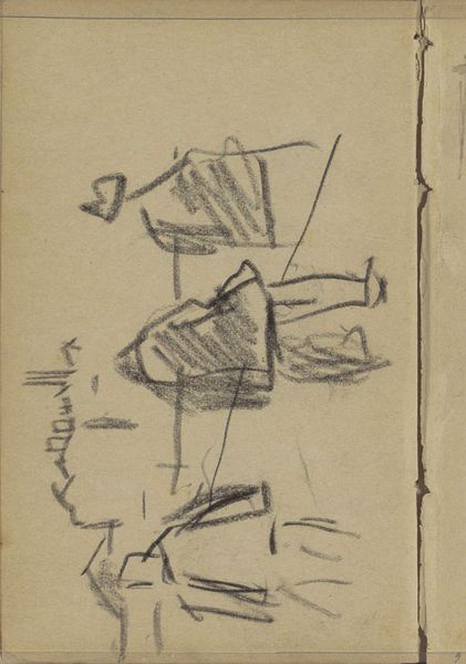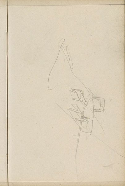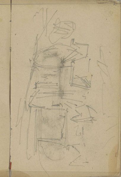 Editor: So, this drawing by George Hendrik Breitner, "Figuur, mogelijk een meisje, aan een tafel," made sometime between 1881 and 1883... It's a pencil sketch, seemingly quite rough and preliminary. I find it really interesting because it provides such an intimate look into the artist’s process. What do you see when you look at this sketch? Curator: It’s compelling to consider this sketch within the context of Breitner’s broader oeuvre and the late 19th-century art world. This isn’t a finished product destined for bourgeois consumption. Instead, it's a glimpse into the labor involved in image-making. We’re seeing the artist wrestling with form, line, and composition – the fundamental materials and processes that underpin even the most polished Impressionist painting. Consider the cost and accessibility of pencils and paper compared to paints and canvas at the time. Who had access to even produce work such as this, and why? Editor: That's a really good point. So, rather than looking at it as a study *for* a final piece, you're saying the *process itself* and the materials become the subject. It hints at class and artistic labor in a way a finished oil painting wouldn't. Do you think Breitner consciously intended for these sketches to reveal this aspect of artistic creation? Curator: Whether it was a conscious intention or not, the very act of preserving and displaying these sketches later elevates the labor, the materiality, and the everyday aspects of artistic creation. It challenges the idea of the artist as solely a producer of luxury goods and prompts us to consider the broader social and economic factors shaping artistic production. The support, even the physical existence of a sketchbook like this implies patronage and wealth behind even the initial idea generation. Editor: That really changes how I see this. It's no longer just a quick study but evidence of the conditions of artmaking itself. Curator: Precisely. By focusing on the materials and processes, we move beyond simply appreciating the finished image and instead examine the complex social and economic networks that make art possible.