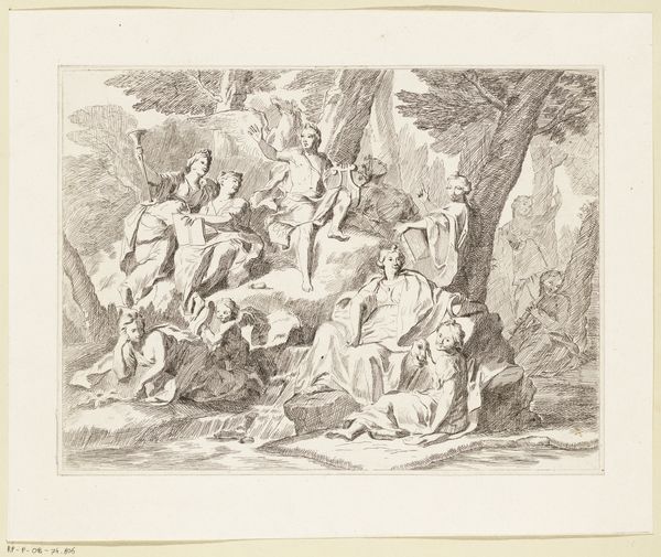 Giovanni Battista Mola created this delicate rendering of “Susanna and the Elders” using pen and brown ink, heightened with white, over black chalk. Notice how Mola uses a complex arrangement of figures and forms to draw our eyes across the scene, yet the whole composition is anchored by the solid architectural elements to the right. The nude Susanna is rendered with soft contours and gentle shading, contrasting with the angular, almost caricatured features of the elders. The interplay of light and shadow is particularly striking: the light source seems diffuse, creating a soft glow that illuminates Susanna while casting the elders in a more ambiguous light. Is Mola perhaps using these visual cues to comment on the themes of voyeurism and power dynamics inherent in the biblical story? What do you make of the formal qualities of the piece?