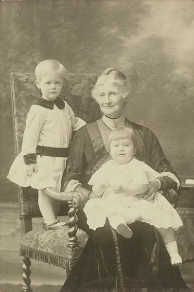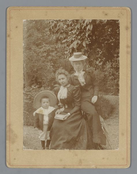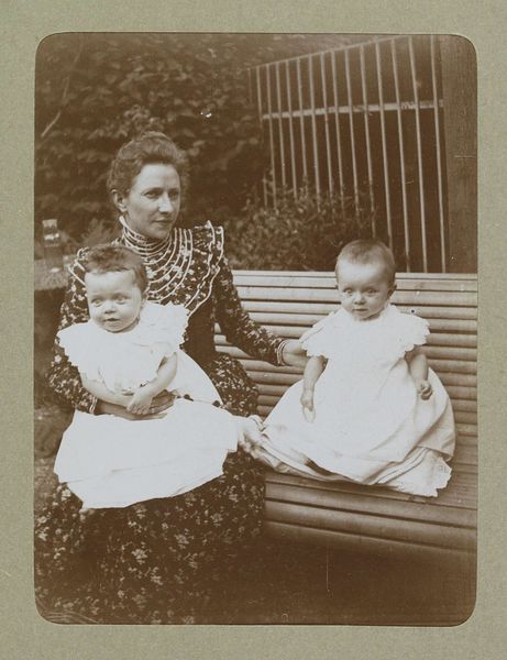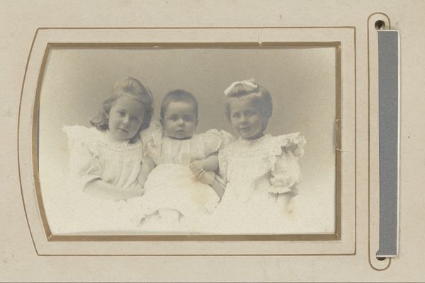 Willem Carel van der Kop made this photograph of a woman and three children sometime around the turn of the century, probably with a glass plate camera. There's a real softness to this image, a sepia-toned world with indistinct forms. It's like memory itself, hazy and warm. I'm drawn to how the figures almost blend into the background. It's a far cry from the crisp, high-definition images we're used to today. The woman's fur collar seems to merge into the muted, overgrown garden. Look at the faces, they seem lit from within, like old-fashioned bulbs. The little girl in the foreground, with her feathered hat, is particularly striking. You can almost feel the texture of the feathers, even though the image is slightly blurred. It reminds me a little of Julia Margaret Cameron's portraits, these early photographs seem to exist between painting and sculpture, trying to capture something of the soul. There’s a quiet ambiguity here. It doesn’t attempt to fix a single story, but rather invites contemplation and multiple readings.