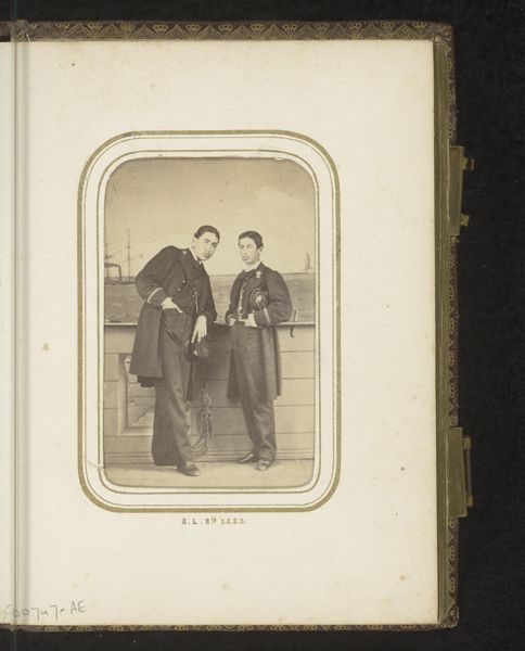 Curator: This is a photographic portrait from the late 19th century, titled "Portret van een staande vrouw en een zittende man, aangeduid als zendeling Van Dalen en zijn vrouw"—that is, "Portrait of a standing woman and a seated man, identified as the missionary Van Dalen and his wife." It's held here at the Rijksmuseum and was created sometime between 1873 and 1900 by Carl Wilhelm Bauer. Editor: Oh, what a stoic pair. I find their postures incredibly revealing. She's standing, yet she’s got her hand possessively on his shoulder as he sits. He seems rather…weighted down. It's a study in contrasts and perhaps the burdens of their vocation? Curator: Precisely. Note how the composition directs our gaze. The woman's height, combined with the visual weight of her ornate dress, creates a vertical emphasis, a kind of assertiveness. And then, look at the man; he is seated, his darker suit absorbing light. It yields to a horizontal, stable form, indicative, perhaps, of his role as a solid foundation. Editor: I see that, but I also sense something else. Their stillness. These old photographs often capture a solemnity that feels… theatrical? It's as if they're acting a part. Is this what they showed the world, or a carefully crafted image? Curator: The very act of posing would suggest that it’s a performance of sorts, wouldn’t you say? Though such performances communicate and cement power structures within families and society. There’s certainly an interesting dichotomy in the plainness of the background and their elaborate dress. A calculated control that tells its own story about privilege. Editor: I suppose. I also wonder about Van Dalen’s mission. What was he trying to accomplish? How complicit were they in any potential…misguided attempts to civilize? The picture, its sepia tones almost like faded memories, make you confront questions of responsibility and the impact of the past. Curator: A penetrating assessment. It reminds us that formal elements like line and light cannot be isolated from historical narratives of colonialism, power, and representation. By deconstructing the visual elements, we open the door to further interpretive possibilities that help bridge medium, image, and complex sociohistorical phenomena. Editor: It’s funny how a simple image of a serious couple can bring all that bubbling to the surface, isn't it? Gives you the chills.