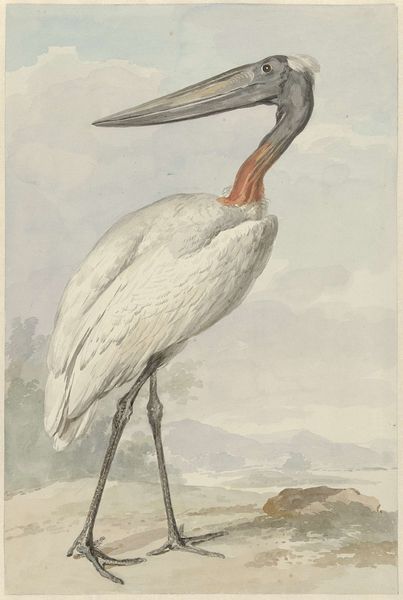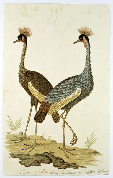 This is Plate 1: Two Ostriches and a Starling, made by Joris Hoefnagel around 1575-1600, using watercolor, gouache, and ink on vellum. Here, the artist skillfully uses these materials to bring a naturalistic quality to the animals portrayed. The watercolor creates a delicate, almost translucent effect, particularly noticeable in the subtle shading of the ostriches' feathers. The gouache adds opacity, allowing for precise details. The choice of vellum, a parchment made from animal skin, is significant. Its smooth surface enhances the vibrancy of the colors, and speaks to a time when the artist relied on skilled craftsmanship. The detailed technique and painstaking labor involved in this artwork contrast sharply with today's mass production methods, offering a glimpse into a world where the value of an object was deeply connected to the time and skill invested in its making. The careful rendering of each animal is also a testament to the artist's skill, achieved through careful observation and a mastery of his materials. Hoefnagel elevates the natural world through the application of skilled labor.