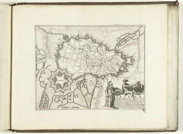 This is an anonymous print of a map of Lille, dating from around 1693 to 1696. It offers us a glimpse into a period marked by shifting political landscapes and military strategy. Lille, then a crucial fortified city, stood at the crossroads of European powers. Its plan reveals more than just geography. The star-shaped fortifications aren't merely architectural features; they represent power and control. They remind us of the ever-present threat of conflict. The geometric precision of the layout, intended to defend against invaders, also speaks to an ambition to impose order on the populace. Consider how the map flattens the lived experience of the city into an easily digestible format. Who was this map for, and what did they intend to do with it? The map invites us to reflect on the relationship between space, power, and identity. It's a historical artifact and a mirror reflecting the complex layers of society.