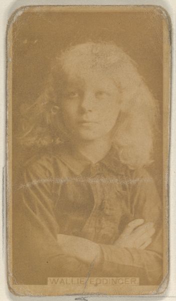 Editor: This is "Helen Sears" by Sarah Choate Sears, held at the Harvard Art Museums. It has a very formal, almost dreamlike quality. What symbols stand out to you? Curator: The rose, worn like a jewel, signifies beauty and perhaps the fleeting nature of childhood. Do you notice how her gaze lacks the typical innocence we expect of children in portraits? Editor: Yes, there's a seriousness. The rose seems almost too heavy for her. Curator: Precisely. It's a loaded symbol. Sears seems to be exploring the weight of expectations placed on women even in youth. The pearls around her neck suggest purity and refinement. Editor: So, it's less a celebration of childhood, more an inquiry into its constraints? Curator: Indeed. It’s a fascinating meditation on the performance of femininity. Editor: I hadn't considered how posed it is. Now I see the cultural weight. Thanks!