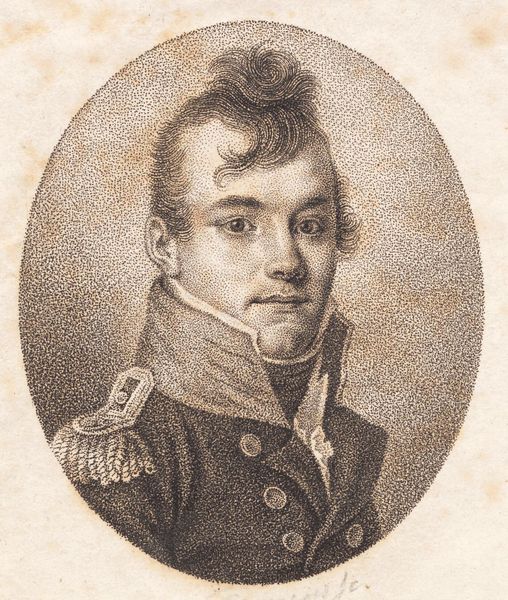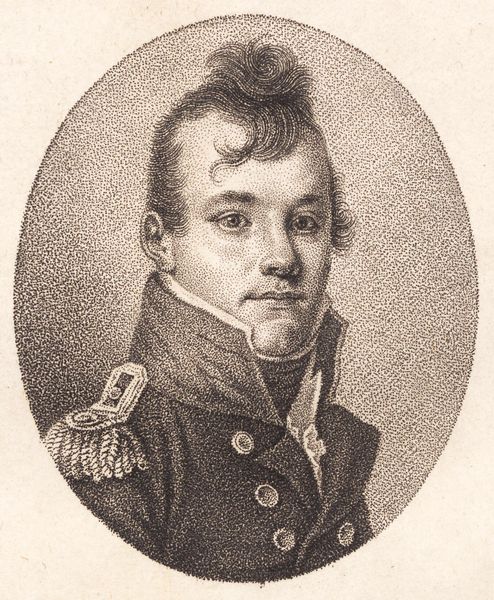 Curator: Let's turn our attention to this portrait, identified as Major Roger Alden. John Trumbull rendered this oil on canvas in 1778. Editor: My first impression? Stoicism. He exudes a kind of quiet resolve, the gaze steady and unyielding against a somber backdrop. It feels charged, as if the subject carries a profound, weighty purpose. Curator: Exactly. Consider the sociopolitical context of its creation, right in the middle of the American Revolution. Trumbull, himself a soldier, painted Alden during a time of immense upheaval. It is difficult not to think about gender and race, about the contradictions between declared ideals of liberty and actual social hierarchy. Editor: Yes, and that striking red sash cutting across his blue coat—such a visceral emblem of power and perhaps, the sacrifice required for such power. Sashes of this kind designated military rank, a tradition harking back to European heraldry. Red often signified courage and leadership. Do you agree that this painting draws heavily on European tradition? Curator: Undeniably. But let's not ignore that these were revolutionary times, despite such classic academic trappings. It reflects not only individual valor, but participation in the establishment of a new social contract. There is little visual acknowledgement of those excluded. Editor: The composition’s symmetry and restrained palette are key. Trumbull purposefully minimized distraction to focus on Alden's character—the steady gaze, firm jaw, the merest hint of a smile… The semiotics here convey trustworthiness, authority, dedication. Curator: Which we might re-interpret in contemporary terms to consider whose stories get centered and remembered. Even here in this work we must consider that such visuals legitimized early power structures. Editor: Perhaps… but I still believe that such potent images can connect us to an emotional landscape long past; by looking back, we see ourselves more clearly now. Curator: An interesting point. It’s that enduring ability to act as a visual flashpoint for conversations across generations. Editor: Yes. These images, with the layered symbolism they possess, really allow us to consider history in fresh and evocative terms.