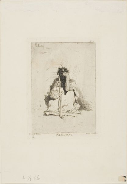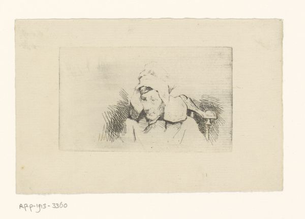 Constant Cap made this etching of a dentist examining a soldier's teeth sometime in the late 19th or early 20th century. You can really see the artist’s hand in the hatching marks which create depth in the image. It’s like he’s sketching with acid, letting the process dictate the forms. The overall tone is sepia, with the density of the marks giving us the tonal range. See how Cap uses short, choppy lines to define the dentist's vest, contrasting with the smoother, longer lines that suggest the soldier's face. It's fascinating how such simple marks can evoke so much detail and texture. This reminds me of some of Whistler's etchings, that same attention to line and the balance between detail and suggestion, but with more teeth! This piece invites us to appreciate the beauty in the everyday, finding poetry in the mundane act of a dental examination. It’s about looking closely, seeing the world as an ongoing process of discovery.