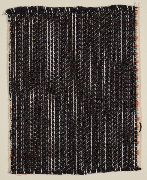 Editor: Here we have a piece entitled "Handwoven Upholstery Fabric," dating from around the 20th century. It's made from wool. The texture really jumps out; it looks so tactile. I’m curious, what symbolic language or hidden stories might you find woven into this textile? Curator: Well, think about what textiles traditionally represent: home, warmth, security. But this is “upholstery” fabric – it’s meant to cover something else, to lend it those qualities. It's not a blanket or garment meant to be worn directly on the body. Is it perhaps referring to a sense of artificiality? The color combination of green and yellow feels quite modern too. Does that suggest a break from some of the more sentimental connotations we typically associate with traditional weavings? Editor: That’s an interesting angle. I was so focused on the homespun feel of the material itself, but you’re right, it is designed to cover something else, not provide comfort directly. Curator: Exactly! And consider how the geometric structure intersects with the raw material. The repetition of the woven pattern might indicate control, structure. Is there tension between nature (the wool, the colors) and the built environment? Editor: It almost makes you think of how nature can be commodified. We try to bring the outside world into our homes. Curator: Precisely. So we aren't just dealing with something functional; it is an image that sparks reflection. Editor: That makes me rethink my initial read of it as simply "rustic." Now it seems much more complex. Curator: Right? What appears familiar can often hold layers of coded meaning about who we are. It seems simple, yet it’s loaded with possibilities!