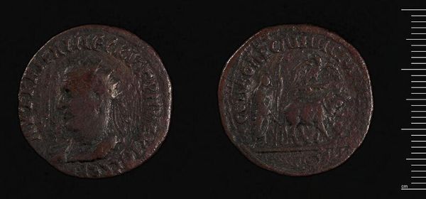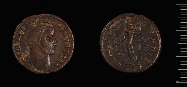 Editor: Here we have a Follis of Diocletian from the Harvard Art Museums. It is quite weathered. What strikes me is how the image and text were physically impressed onto the metal. What can you tell us about this piece? Curator: Let's consider the production of this coin. Its value resided not just in the metal itself, but also in the labor of extracting, refining, and stamping it. The very act of producing currency demonstrates imperial control over resources and labor. Editor: That’s a really interesting perspective. I hadn't thought about the labor involved. Curator: Think about the social implications, too. Who controlled the mines? Who profited from its distribution? This seemingly simple coin reveals a complex network of power and consumption. Editor: I see what you mean. I'll definitely look at coins differently from now on. Curator: Exactly! Material culture offers rich insights into economic and social systems.
