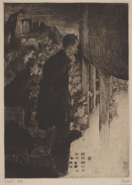 Grant Tyson Reynard created this print, Carnegie Concert, using etching and drypoint. The image captures a performance at Carnegie Hall, offering us a glimpse into the cultural life of the early 20th century. Reynard's work invites reflection on the relationship between art, society, and individual experience. In this piece, we see a layered audience, where women are depicted in what looks like a private box, separate from the general admission. What does it mean to be an observer of culture, and how does our position shape our experience? This composition prompts us to think about the nuances of spectatorship – who has access, who is on display, and how social structures influence our perceptions and interactions within cultural spaces. The quiet intensity of the print draws us in, making us consider our own roles as observers and participants.