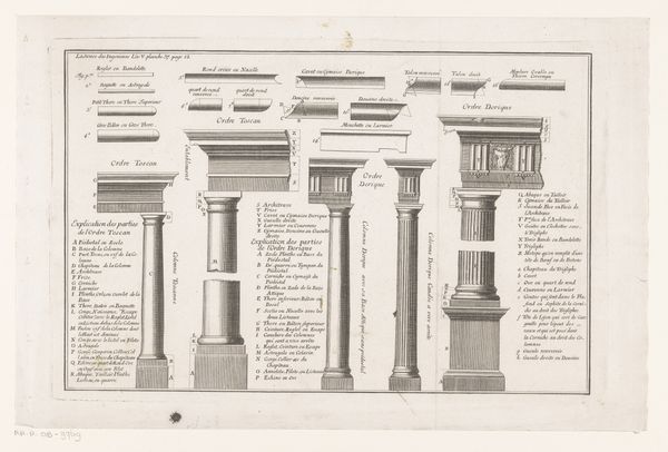 Curator: At first glance, there’s something deeply calming about the symmetry of this composition. Editor: Calm maybe, but also strangely sterile. Like an architect's idealized vision, rather than a lived-in space. We're looking at "Bibliotheek," or "Library," an engraving dating back to 1767 by Jean François de Neufforge. Currently held in the Rijksmuseum’s collection, it offers a detailed view of a grand bookcase design. Curator: The choice of print as the medium is very interesting. It really puts this in dialogue with broader accessibility, despite depicting something grand. This image isn’t just about displaying wealth, it’s about the social statement of knowledge and taste-making. A print like this circulates ideas about how a library *should* look and function within aristocratic circles. Editor: Agreed. Look at the precision of the lines, the clear delineation of each volume. The materials speak of controlled production, almost mass production for a certain class of patron with the financial means to replicate such grandeur. The paper stock, the ink—all commodities that reflect the economics of artistic creation and consumption during that era. And, while it mimics the effect, stone carving in particular took many specialized hands to complete! Curator: Absolutely. Consider the context. The Baroque style, with its emphasis on ornamentation, functioned to impress. But this isn't solely about decoration; it's a projection of power linked directly to intellectual authority. Each volume displayed implies knowledge mastered, creating a visual argument for social dominance. And this image allows them to imagine *having* the real thing. Editor: And also, let’s not forget, these engravings would be crucial for artisans, cabinet makers to physically build something like this. Each line, each shadow suggests the specific techniques and labor processes involved in high-end interior design, reflecting a hierarchy of craft that ultimately dictates what “high art” means. I imagine the cost for the construction being extremely high at the time, limiting the possibility of even replicating such image in real life. Curator: Indeed, the layered meanings here are rich. I initially read it as a celebration, now I find its rigid structure reveals underlying codes about power structures within 18th-century society. Editor: Exactly, beyond its surface, the piece encourages deeper inquiries into consumption, craftsmanship, and status through materiality.