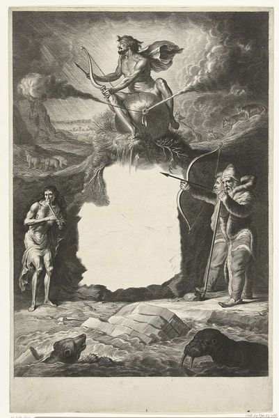 Curator: François-Nicolas Chifflart, born in 1825, created this work titled "La France libératrice," which translates to "France the Liberator." Editor: It has a frenetic energy, doesn't it? Like a charcoal whirlwind has settled onto the page. There's something urgent in the scratching of the lines. Curator: Absolutely. The print's intense mark-making conveys the fervor surrounding ideas of liberation. And France, as an idea, was being heavily debated at the time. Editor: I’m struck by the drummer at the center. He seems to be summoning the angelic figures above, or perhaps rousing the people below. The drama is palpable. Curator: The imagery connects earthly action with divine sanction, a common trope in depictions of national identity and purpose. Editor: Well, it certainly beats a simple portrait. It's like a history painting condensed into a fleeting dream. I find its rawness incredibly engaging. Curator: A powerful reminder that even liberation has complex layers and conflicting narratives. Editor: It is, indeed, much more evocative than a polished propaganda piece.