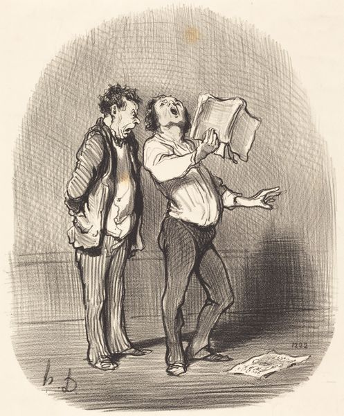 This lithograph, made by Honoré Daumier, captures a boxing lesson gone awry, revealing more about social tension than athletic prowess. The prominent motif here is the raised fist, a symbol resonating through time, initially a gesture of power and aggression as old as humanity itself. Consider its echoes across history. In ancient Roman gladiatorial combats, a raised fist could signify victory or a call for mercy. Later, this gesture reappears in revolutionary art, signaling defiance against authority. Here, Daumier uses it to satirize the bourgeoisie, lampooning their awkward attempts at masculine vigor. The act of physical struggle depicted has primal roots, tapping into collective memories of conflict and survival, a psychological drama playing out on the social stage. The boxing scene engages viewers on a deep, subconscious level, reflecting our own anxieties about social status and physical confrontation. This symbol, like so many, progresses non-linearly. In Daumier’s hands, the raised fist becomes a tool for social critique, evolving from a sign of raw power into an emblem of bourgeois pretension.
