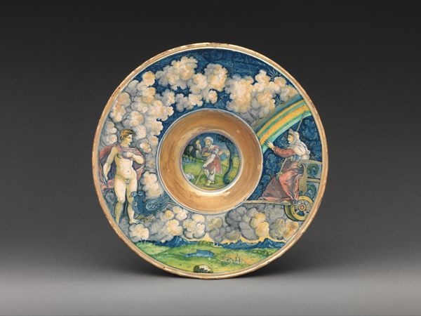 This glazed earthenware dish, crafted around 1530 in Urbino by Maestro Giorgio Andreoli, depicts Hercules slaying the centaur Nessus. The mythic struggle is immediately apparent: Hercules, with his muscular build, brandishes a club overhead as he confronts Nessus. This scene, rooted in classical antiquity, carries echoes through the ages. Consider the centaur, a hybrid creature symbolizing the duality of man—reason and animal instinct. This motif finds resonance in various forms across cultures, embodying the conflict between our higher and lower selves. We see variations of this struggle throughout history, with similar creatures symbolizing the untamed and instinctual aspects of human nature. The act of slaying the centaur embodies a triumph over chaos and irrationality. The emotional intensity captured in their struggle reflects our collective subconscious, where primal fears and desires collide. The re-emergence of such symbols underscores the non-linear progression of cultural memory, revealing how ancient struggles continue to shape our understanding of ourselves.
