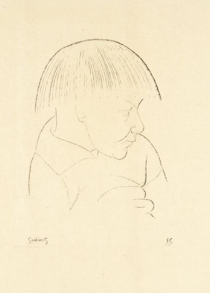 This drawing, made by Adolph Kittendorff to illustrate H. V. Kaalund’s “Fabler for Børn,” is rendered in pencil on paper. It is a study, an outline, a sketch of a child holding a plate. The artist's hand is evident in the pencil strokes, which appear light and free. The thin lines of the drawing, and the tan color of the paper support this impression. Rather than being highly finished, every mark is visible, every change of direction. This quality implies a certain intimacy. Kittendorff captures a quick, unposed moment, like a snapshot. Interestingly, drawing has always had this dual capacity: as both a stage in the making of something else, and as a final statement in itself. In the context of the Industrial Revolution, when drawing became ever more important to design and manufacture, this kind of rapid image-making gained new cultural force. It’s a reminder that the art of making is often a delicate dance between intention and chance.
