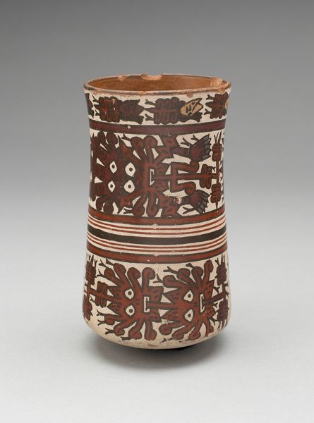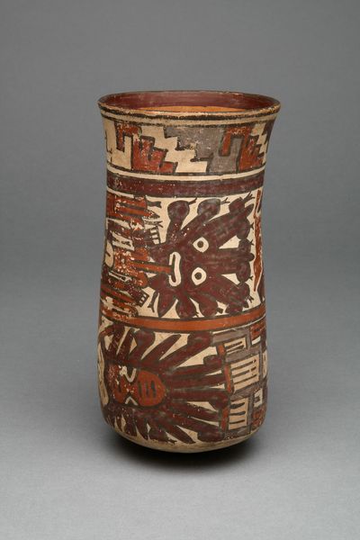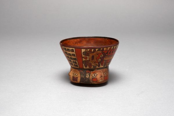 Curator: Here we have a carved wooden box created around the 18th century by the Wendat, also known as the Huron. It resides here at the Minneapolis Institute of Art. Editor: The age really comes through in the darkened wood, doesn't it? The surface is deeply etched with decorative elements, it has a certain weighty quality, despite its diminutive size. I wonder what kind of tools they used to achieve that level of detail. Curator: The Wendat were renowned for their woodworking skills, particularly their birchbark containers and carved wooden objects. Their craftsmanship served important roles within their culture, which included trade and diplomacy. It’s remarkable how these boxes facilitated both practical storage and symbolized social standing. Editor: It makes me consider what this box would have held and how the labor of its making intertwines with everyday life. Those repetitive carved patterns, I suspect this object played some ritualistic role? Curator: While its specific purpose remains uncertain, such boxes could have contained valued personal belongings, medicines, or ceremonial items. They acted as a display of craftsmanship and potentially of the owner’s status within the community, with motifs that would have meaning to them. Editor: And the impact of trade relations at this time is apparent through this level of detail! These sorts of carvings required specialization of labor and access to certain materials. Is that part of a sun or flower pattern I see repeated in the details? Curator: Possibly. The repeated circular motifs and the geometric bands may reference natural elements or cosmological beliefs, or serve as clan symbols. This design likely held significance within Wendat society and underscores their sophisticated visual language. Editor: Thinking about its place within the domestic sphere shifts my understanding; it wasn't just an object; it was embedded within their existence. I do wish the wood was better preserved for better material assessment! Curator: It's precisely the aging of the wood that allows it to still whisper stories to us. This 'Box' embodies the intersection of art, culture, and history. Editor: Agreed. This simple container reveals just how rich and layered Indigenous material culture truly is.