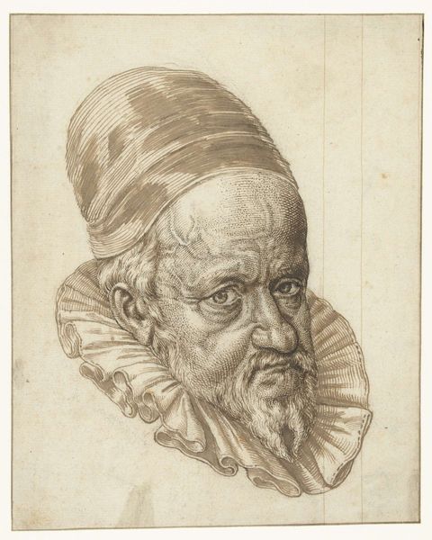 Urs Graf created this Bust of a Bearded Old Man on a sheet using pen and black ink, around 1521. Graf was a Swiss Renaissance mercenary and printmaker, who straddled the line between artist and soldier. This image offers us a glimpse into the visual culture of the early 16th century. The man’s downcast gaze evokes a sense of introspection, inviting us to ponder the weight of experience and perhaps the changing social structures of the time. There’s a stark contrast between his elaborate beard and the baldness on his head, perhaps representing a tension between wisdom and mortality. Graf’s signature, a sword-like mark, boldly asserts his identity within the frame, reminding us of the artist's own complex role in society. Consider how Graf, as both artist and soldier, navigated the shifting sands of identity and representation. How might his personal experiences have shaped his portrayal of this elder? This work serves as a mirror, reflecting the multifaceted layers of identity, history, and personal experience.