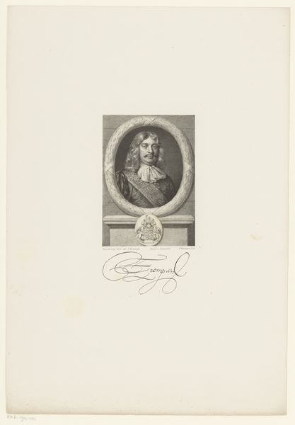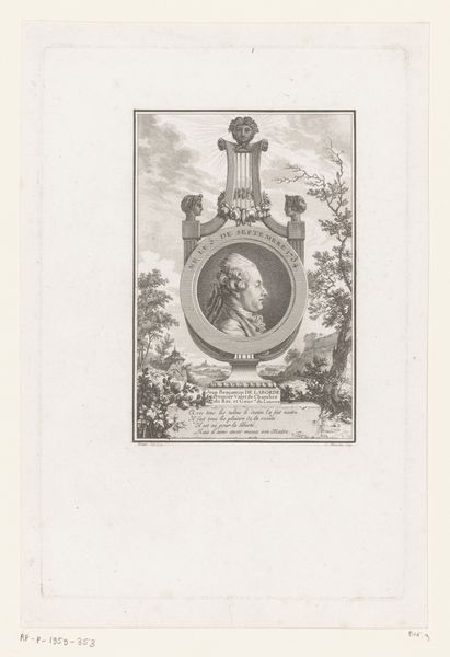 Curator: Here we have a print from 1755, "Portret van Johan Conrad Spengler," currently held in the Rijksmuseum collection. It’s an engraving of Odoard Helmont von Lode. Editor: My first impression is how ornate the presentation is. It feels like a monument in itself, even before you consider the subject. Almost aggressively Baroque, with all those flourishes and details. Curator: Exactly. Von Lode was clearly embedding Spengler, whose profession was coin and medal engraver, within a context of civic importance and artistic legacy. Notice the architectural pedestal and elaborate frame around the portrait medallion. The entire image positions Spengler as a pillar of society, his identity intertwined with his public role. Editor: And how does this public role intersect with power dynamics? Spengler, in capturing likenesses on currency, essentially participates in visualizing state authority, doesn't he? It seems important to reflect on how the visual imagery created reinforces existing class structures and celebrates those in power. Who exactly was consuming such portraits? Curator: Certainly, portraits like these functioned as endorsements, circulating images of worthy citizens within the elite circles. This engraving acted as a form of social and professional capital. The visual style also harks back to classical ideals, further legitimizing Spengler’s status by associating him with historical figures known for wisdom and leadership. We shouldn't view this imagery as neutral. Editor: No, of course not. Looking closer, the very act of framing Spengler within such grandeur speaks volumes about how those commissioning these portraits saw themselves. They controlled the narrative, deciding whose stories got told, whose faces were remembered, and, even now, which of us were in a place like this one contemplating this portrait. It emphasizes that history is not just about what happened but who gets to write it. Curator: Absolutely, by studying such works, we can uncover layers of meaning related to identity and power. Editor: It's important to bring these insights to contemporary conversations about how we represent individuals and communities today, questioning who benefits from certain narratives. Curator: Indeed. Approaching artworks in this way bridges the past and present, revealing how the social and political underpinnings of art shape our perceptions.