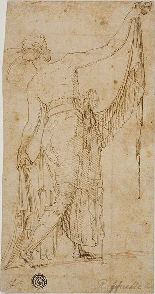 Francesco Montelatici made this drawing of a standing man with a hoe in the 17th century, using pen and brown ink on laid paper. The quick, gestural marks, and visible hatching show the artist working out the figure’s pose and proportions. The type of paper used, laid paper, was common at the time. It has a ribbed texture created during the paper making process, visible in the artwork as subtle lines. The use of these widely available materials connects the drawing to the workshop practices of the time. It signals its function as a preparatory sketch, rather than a finished artwork intended for display. Consider also what the artwork depicts: not a nobleman or mythological hero, but a common laborer. Montelatici elevates the working class through skillful rendering of the figure, demonstrating that drawings of everyday subjects can possess the same artistic merit as more traditionally celebrated themes. In doing so, he blurs the boundaries between genre and fine art.
