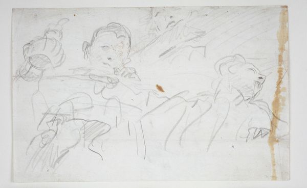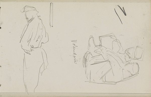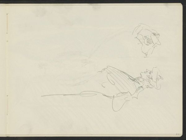 Edvard Weie created this landscape sketch with graphite on paper. The deliberate use of graphite—a readily available and relatively inexpensive material—speaks volumes. The marks, light and gestural, are evidence of a hand moving across the page. Note the pressure applied; some areas are densely hatched, while others are barely there. This variance gives the figures weight and volume, despite the overall unfinished quality. The immediacy of sketching contrasts sharply with the labor-intensive processes of traditional painting. Weie uses the material of graphite to engage in a mode of seeing and thinking, creating a space for spontaneity and change. The sketch is more than just a preliminary study. It’s a record of the artist's process. Weie’s work challenges us to look beyond the finished product and recognize the value in the ephemeral, the unfinished, and the everyday materials that make art accessible.