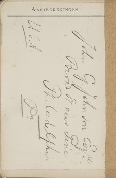 Here we see the reverse side of "Notities," a work by Jan Willem van Borselen. Though the notes themselves are not the artwork, they provide a fascinating, intimate glimpse into the artist's world. Born in the Netherlands in 1825, Jan Willem van Borselen lived in a time of immense social and economic change. As industrialization progressed, the country also saw the rise of Romanticism in art, where artists sought to capture emotions and feelings. The notations offer us a personal connection with Van Borselen. They are a bridge between the historical context and the artist's individual experience, and provide a quiet, almost secretive, counterpoint to the grand narratives of history. These notations allow us to reflect on the intersection of the personal and the societal, and the artist's place within the changing world. They invite us to consider what is revealed and concealed in the act of note-taking, and how that reflects broader issues of identity, memory, and history.