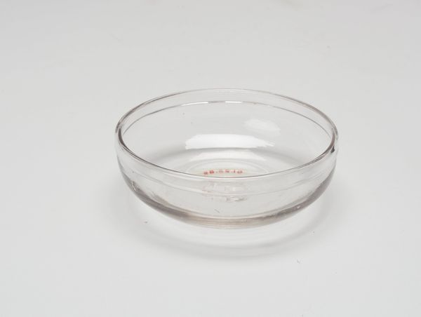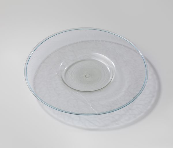 Curator: Here we have an exquisite example of Venetian glassmaking: an anonymous "Fruit Dish" from the 17th century, held in the collection of the Minneapolis Institute of Art. Editor: My first impression is one of lightness and airiness. The transparent glass gives it an almost ethereal quality, like something that could float away. Curator: Indeed. The skill required to achieve such delicate work is considerable. Venetian glassmakers held a near monopoly on fine glass production at this time, closely guarding their techniques. The furnace technology, the precise recipes for the glass batch, the specialized tools—all of this underpinned their supremacy in the luxury goods market. Editor: That striking turquoise chain design circling the center draws the eye. Blue is often associated with the heavens, or purity. Does the form itself—this raised, open dish—carry any specific connotations, do you think? Perhaps generosity, abundance...? Curator: It's hard to say definitively without knowing the original owner. These objects signified wealth and taste. The consumption of fruit itself could be a performance of affluence, certainly. One might examine how this dish, designed for display, engages in creating hierarchies. Editor: Perhaps the circular motif signifies eternity, or wholeness? Also, the dish begs the question, what kind of fruit was held? Fruits from overseas were prized then, of course, and also the display of seasonal produce. All things evanescent! Curator: That's interesting. These fragile vessels highlight not only skilled craft, but also social stratification. The means to both produce and possess such things. The cultural context surrounding Venetian glass involved restrictive guild practices and intense competition. Editor: So it’s much more than just decorative art, then; these visual languages, symbols, become little historical doorways into a larger cultural story, wouldn't you agree? The blue itself would carry meaning, wouldn’t it, reflecting the skies and seas linking Venice to other ports and markets? Curator: Precisely. Analyzing the "Fruit Dish," one gains insights into production methods, consumption practices, and even global trade routes that sustained Renaissance Italy. Editor: The dialogue we've been able to have today underscores that objects always harbor stories, and by paying attention to both design and history, we unlock ever more insights. Curator: Exactly, examining materiality and meaning together unveils rich cultural narratives embodied within the most seemingly simple things.