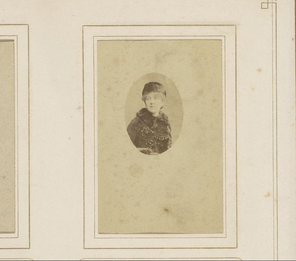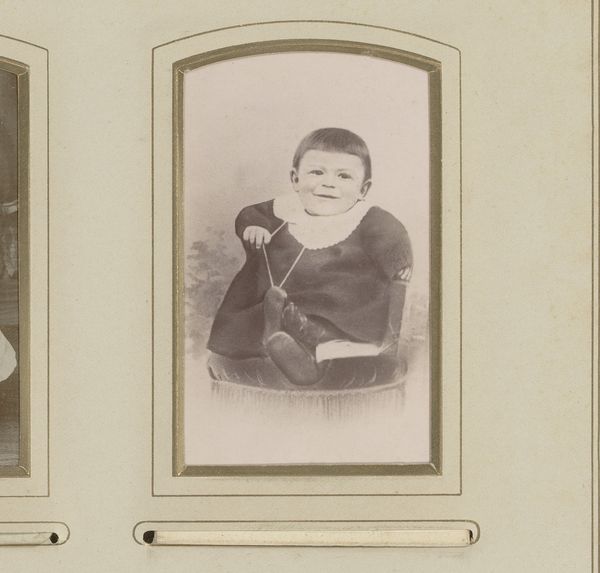 Curator: Here we have a photograph from around 1870 by A. Blavet, titled “Portrait of a Child, Standing by a Table with Books.” It's a charming example of portraiture from the late 19th century, showcasing academic art through still-life photography. Editor: It’s… curious. There's such a stillness, almost an anticipation of something unseen in that child's eyes. And those books! They add such weight to the scene, a world of potential and knowledge resting right there on the table. Curator: The books certainly weren't accidental. They were highly symbolic in this period, representing learning, social status and, importantly, the promise of upward mobility through education. Positioning the child next to them speaks volumes about societal aspirations. Editor: I'm fascinated by the child’s pose and dress too. It's as though he's playing a miniature adult, that checked pattern mimicking perhaps the garb of a respected figure of the time. What stories are we being told through such representation? Is this portrait about inheritance? Curator: Very possibly. Remember, portraiture was a powerful tool for projecting family legacy and virtue, and photography made that accessible to a broader segment of society. Consider the subtle messages—discipline, intellect, perhaps even patriotism if the pattern on the dress does point to a familial lineage. Editor: It is a powerful means of controlling how future generations might see their own lineage. Looking into this child's face now, across more than a century, the clothing feels like a message meant to survive across time. The setting with its aged aesthetic enhances a profound longing or cultural memory that such an image embodies. Curator: I agree; there's something haunting in the staging. Photography allowed for this capture of ephemeral moments, freezing not just faces but also the societal currents of an era for a later audience to unpack. It serves as a material testament to a specific ambition—a child ready to face his education. Editor: Thinking about the child and the books juxtaposed evokes the timeless symbology surrounding the acquisition of knowledge— innocence poised to discover profound or possibly dangerous concepts and ideologies. This child becomes symbolic of entire generations stepping into new realms. Curator: Precisely, we witness within the image not just an individual portrait, but the complex social and political hopes invested in the rising generation. Editor: Looking closer makes the image’s layers ever more haunting, reflecting humanity’s enduring preoccupation with both recording time and creating messages for posterity.