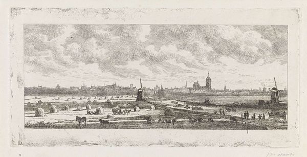 This is a print of a city on a peninsula, made by Matthieu van Plattenberg in the mid-17th century. Plattenberg, also known as Montaigne, made this image using the intaglio process. A metal plate, likely copper, was incised with lines, likely through the use of acid. Ink was then rubbed into these lines, and the plate pressed onto a sheet of paper. The material qualities of the print, the fine lines and delicate shading, give the image a sense of precision and detail. The city is rendered in miniature, yet the artist manages to convey a sense of its bustling activity. The textures of the water, the buildings, and the sky are all carefully delineated. The intaglio printmaking process was a highly skilled craft, requiring years of training to master. It was also a relatively labor-intensive process. Yet, the resulting prints could be reproduced in large numbers, making them accessible to a wide audience. This points to the way that printmaking was tied to wider social issues of labor, politics, and consumption in the 17th century. Thinking about the materials, making, and context of this print allows us to appreciate its full meaning.