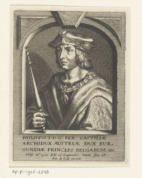 Curator: This engraving, “Portrait of the Emperor Maximilian I in an Architectural Frame,” offers us a glimpse into the visual culture surrounding power in the Northern Renaissance. Though this is a copy, it still reflects the artistic milieu of 1480-1545, revealing how the Emperor wanted to be seen. Editor: It has a very formal and severe tone. All those heraldic beasts and elaborate architectural elements give it a weightiness; then Maximilian himself looks a little weary, despite all the symbols of authority surrounding him. Curator: Indeed. The frame, replete with classical columns and fierce griffins, evokes Roman imperial imagery, tying Maximilian to that legacy of power. Note the inscription above his head – "Imperator Caesar Maximilianus Augustus" – it's all very deliberately constructed to project a certain image. Editor: The eagle, prominently displayed above, feels like a shorthand for Holy Roman Empire—almost a brand logo of sorts. I'm curious about the function of these portraits—were they intended as propaganda, diplomatic gifts, or personal keepsakes? Or, were they meant to visually cement the power structures for those that could view them. Curator: All of the above, probably! Images like this played a vital role in disseminating the Emperor’s image and solidifying his authority across his vast and somewhat disparate territories. The symbols helped create a sense of shared identity and allegiance to the crown. Also consider how printed images circulated more broadly than paintings accessible only to an elite few. Editor: It's interesting to think of the print as a reproducible instrument of power—an early form of mass communication. It reminds us that images have always been deeply enmeshed with political and social realities. What endures with me, are not just the marks of authority, but an odd feeling that maybe this Emperor wanted us to know his mortality too. Curator: That’s a fascinating reading. Perhaps even subconsciously, these carefully constructed images sometimes reveal more than intended. Thank you for illuminating that for me!