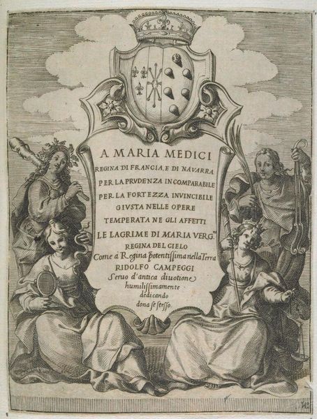 This etching, "Vrouw uit Italië," was made by Stefano della Bella around the mid-17th century. Note the figure of a woman, richly dressed, with a plumed helmet and flowing robes. The composition is strongly vertical, with the figure centered and presented as a personification of Italy, a symbolic representation through form and allegorical elements. Bella's use of line—precise and controlled—creates intricate patterns in the drapery and texture, while the overall structure of the etching reinforces a hierarchical representation. This is more than a portrait; it's a statement about Italy's identity and status, constructed through visual codes accessible to its contemporary audience. The text below further cements the symbolism, embedding it in a broader cultural and political discourse. The etching functions as a semiotic device, where the artist encodes meaning through recognizable visual elements and cultural associations.