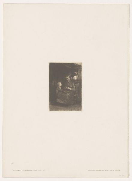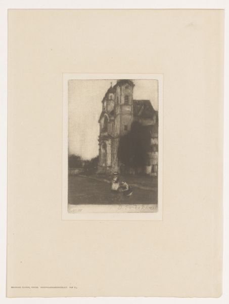 Editor: Here we have Willem Witsen's "Montelbaanstoren bij avond in Amsterdam," dating from around 1887 to 1888. It’s an etching, a print, using ink, pencil, and perhaps watercolor on paper. The heavy use of monochrome gives the piece a rather somber feel. What's your read on this artwork? Curator: This image, for me, speaks volumes about the urban experience and the construction of Dutch identity at the end of the 19th century. Witsen, deeply rooted in the Amsterdam art scene, offers us a vision of the city that moves beyond simple representation. Consider the choice to depict the Montelbaanstoren at night, cloaked in shadow. Why focus on this less-celebrated view, you think? Editor: Perhaps to show the darker, less picturesque sides of urban life? Curator: Precisely. It reflects the period's growing social awareness and critical examination of the rapid changes brought about by industrialization. The impressionistic style, though subtle here, reinforces that sense of modernity – a move away from romantic idealizations toward capturing fleeting moments, much like the fleeting stability in a society undergoing significant transformations. The dominance of dark hues emphasizes the sense of alienation, the oppressive weight of the city, particularly poignant given Amsterdam's colonial history and its reliance on exploitative global trade networks during this era. Can you see any connection there? Editor: Now that you mention it, the darkness could symbolize a reckoning with the shadows of its past prosperity. The tower, imposing yet blurred, feels almost like a ghost of that past. Curator: Exactly. By juxtaposing aesthetic beauty with these nuanced layers of critique, Witsen prompts us to reflect on our relationship with history, urban spaces, and the sociopolitical narratives embedded within them. Editor: This has given me much to consider. I'll definitely look at Witsen and other Impressionists with a sharper perspective now! Curator: Indeed. Art like this functions as an entryway, pushing us to question not just what we see, but *how* and *why* we see it that way.