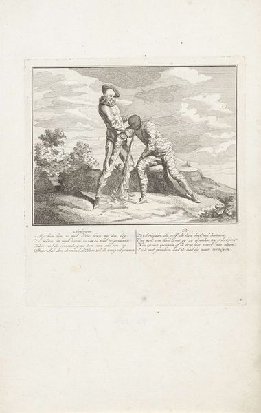 Curator: This is Isaac Weissenbruch's "Poor Family Walking on a Country Road," likely created sometime between 1836 and 1912. It's a pencil drawing, possibly prepared for engraving, and currently held at the Rijksmuseum. What strikes you immediately? Editor: It’s somber, certainly. The grayscale palette enhances the feeling of hardship; their journey appears arduous. What was it like to be one of those family members who were always exposed on these travels, in all elements? Curator: That emotional weight speaks directly to Weissenbruch's grounding in realist traditions. His choice of everyday subject matter elevates the previously unexamined lives of working class families. Consider, too, the broader 19th-century context: urbanization, industrial upheaval, and its subsequent effects on the marginalized. The very act of depicting this family constitutes a potent social commentary, giving dignity to the otherwise invisible. Editor: Indeed, you can see it's the family unit that's providing structure when facing all these larger forces that might push them apart, so how is the artist representing this reality? I’m intrigued by the use of pencil and what looks to be preparation for print. There’s an inherent connection here to accessibility and reproducibility, wouldn't you agree? This suggests the intent was to disseminate the image widely, amplifying the family’s plight across social strata. Curator: Exactly. The decision to employ a medium suited for mass production transforms it into a statement about access, challenging traditional art boundaries and the elite's monopoly on visual culture. Think about how distribution shapes perceptions. Editor: Right, but what are we not seeing about the labor involved here? There is that element as well: both what is represented, this family unit surviving and traveling, and the artist's time and toil that we now simply consume without considering its value in material terms. What kind of work would be expected to pay off in that time for an artist working in the city? Curator: That kind of reading provides insight into the production networks themselves, how this artist functions as a worker inside their economic and historical moment. By turning to philosophies, like those espoused by Marx, it can expand what an artistic representation means by calling attention to value creation under duress. Editor: Seeing Weissenbruch’s drawing and examining his media helps reveal those underlying truths, wouldn't you say? To see is to start engaging. Curator: Absolutely. Understanding how "Arm gezin lopend op een landweg" intertwines medium, message, and historical circumstance allows us a better look at intersectionality itself. Editor: In the end, these quiet portraits capture the experience of work and give insight into history in unique ways.