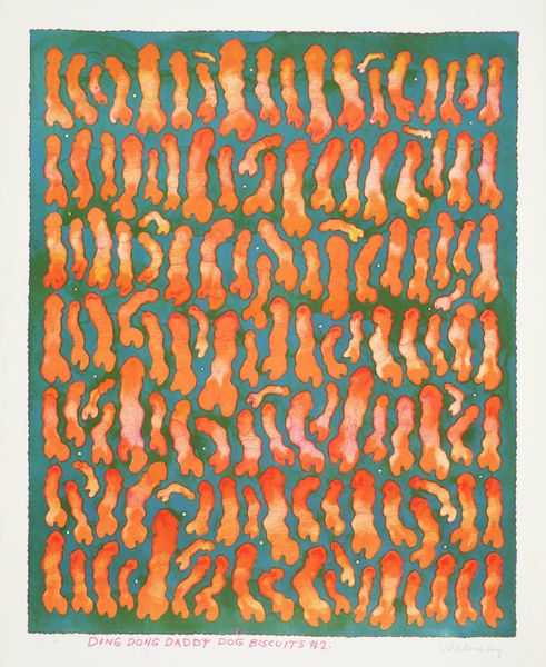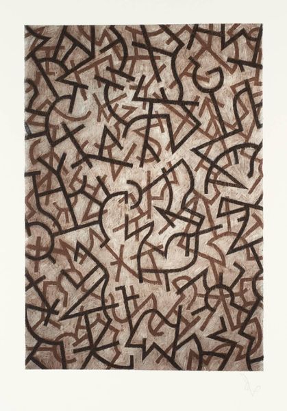 Mark Tobey created this print, *Pensees Germinales*, using etching and aquatint. From afar, the artwork appears as a dense, textured field of brown and blue, evoking a sense of organic proliferation. Up close, we see a network of individual marks, lines, and dashes, scattered across the surface. This all-over composition, without a clear focal point, disrupts traditional notions of figure-ground relationships. Tobey’s approach can be understood within the context of Abstract Expressionism, where the act of mark-making itself becomes the subject. The title, *Pensees Germinales*, which translates to "Germinal Thoughts," suggests ideas in their nascent stage, mirroring the visual sense of emerging forms. This work destabilizes fixed meanings and invites viewers to contemplate the generative potential inherent in abstraction.