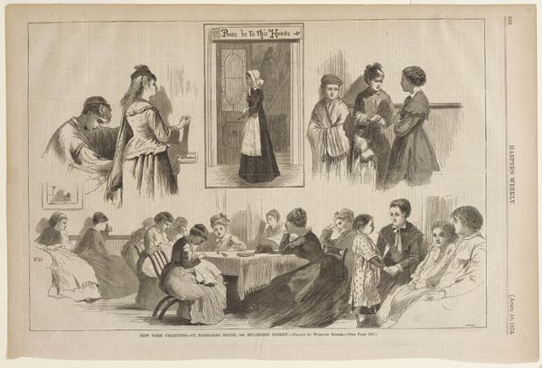 Curator: Looking at this print, "News from the War," it's hard not to feel a wave of melancholy. The central image of the grieving woman just anchors it in sorrow, doesn't it? Editor: It does. This composite wood engraving, attributed to Winslow Homer, really captures the pulse of a nation during wartime. It's like a visual symphony of emotions, from the stoic soldiers to the celebratory crowds. Curator: The artist certainly understood the power of contrast. The small vignettes playing against each other heighten the emotional impact. The joyous celebrations in Richmond versus the palpable grief… it's a powerful juxtaposition. Editor: And it speaks volumes about the role of newspapers like Harper's Weekly. They weren't just delivering news; they were shaping public sentiment, framing the narrative of the war for a diverse audience. Curator: Absolutely. It's more than just reportage; it's a curated perspective, isn't it? And one can't help but wonder about the countless untold stories behind each of those faces. Editor: Indeed. This image makes one ponder the price of war and its lasting impact on the collective psyche. It serves as an enduring reminder of a nation divided and the human cost of conflict. Curator: It certainly does. I’m left with an echoing sense of the profound, personal impact of these historical moments.