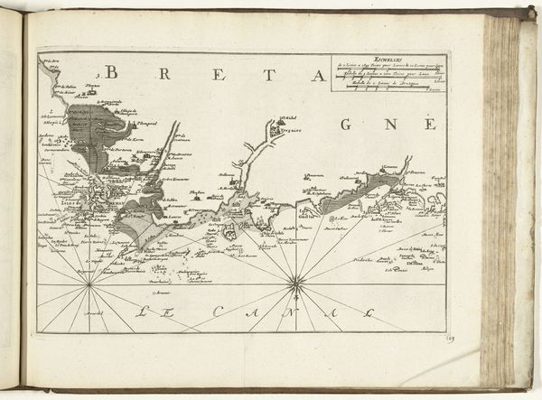 This is an anonymous map of the French west coast near Rochefort, made around 1702. The cartographer presents us with a landscape dominated by interconnected waterways. The winding rivers and coastlines are rendered with precise, delicate lines, creating an intricate network across the paper. The composition is structured by the radiating lines from two compass roses, which not only serve a navigational purpose but also visually organize the space. The detailed rendering of the land and sea suggests an effort to capture and control the geographical space through representation. Each stroke and carefully placed label becomes a signifier, encoding geographical and political information. The map’s formal qualities, its lines and structures, invite us to consider the broader cultural and philosophical implications of mapping as an act of constructing knowledge and power. The map is not merely a reflection of reality but an interpretation, imbued with the values and intentions of its creator and the society for which it was made.