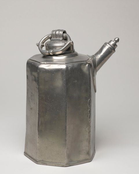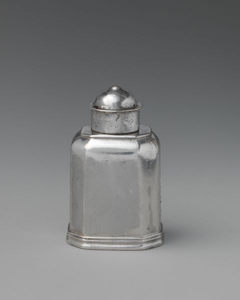 Curator: Here we have a delightful object from the early 18th century. It’s a miniature silver tea caddy, likely crafted in England between 1720 and 1730, currently held at The Metropolitan Museum of Art. The artisan is recorded as John Le Sage. Editor: Well, first impression? It reminds me of a tiny, dignified fortress guarding precious aromatic secrets. So solid, and yet… precious! What did tea mean back then? Curator: Exactly! In the Baroque period, especially, tea was more than just a beverage, it was a symbol of wealth, social status, and refinement. This little silver container elevates it further! Consider the craftsmanship – the faceted sides catching the light. It turns an everyday item into a ceremonial object. Editor: Those facets! They are a game of light and shadow, aren’t they? Almost jewel-like, turning the container itself into something almost sacred. And tea then was tied to ritual, wasn't it, not just a quick caffeine fix. It had cultural weight. Curator: Absolutely, and the size also hints at the owner’s control over a prized commodity. Tea wasn't casually accessible. Think of it: the little key, the locking box... all safeguarding the leaves from prying eyes! There is a certain formality even in the miniature size of the piece. Editor: So it’s more than a box. This is about access, about power, but also about the quiet, personal ritual. Tea drinking, for some, held meditative qualities. This silver box then also holds the promise of such reflective moments. A beautiful illusion! Curator: It definitely echoes a lot of things. Perhaps it contains little more than symbolism now, and certainly held small amounts of tea back then, but for me it speaks volumes about what we chose to elevate into treasures and relics of another world. Editor: I'm left imagining the clinking of tiny spoons and hushed conversations around a beautifully set table, the caddy almost a stage prop to an afternoon ritual. It's far more resonant and less austere than it initially appeared, don't you think?