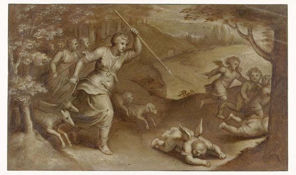 Adam Elsheimer painted this small oil on copper panel, "The Digging for the Cross," as part of a larger altarpiece in the early 17th century. It reflects a time of religious and political conflict in Europe. Here, Elsheimer depicts the legendary search for the True Cross, an event steeped in religious and political meaning. Notice the laborers, their bodies rendered with a tactile realism, set against the more formally dressed clergy. This contrast invites us to consider the social hierarchies of the time. The physical labor of the working class literally unearths the sacred relic, while those in positions of religious power look on. Consider the emotional weight carried by this image. The act of unearthing the cross is not merely a discovery; it's a re-emergence of faith and a physical manifestation of the intersection between the earthly and the divine. Elsheimer asks us to reflect on how tangible objects can shape our spiritual and communal identities.